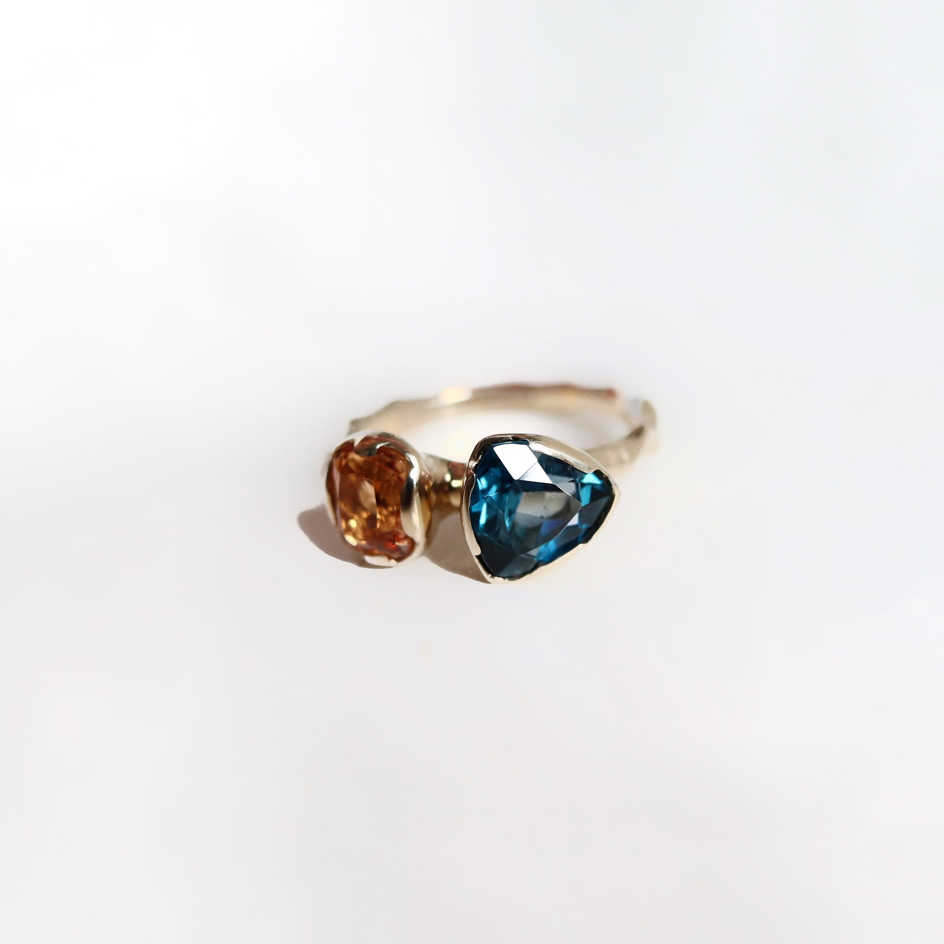 A modern interpretation of the classic Toi et Moi ring, a unique way to unite two gemstones in one design.